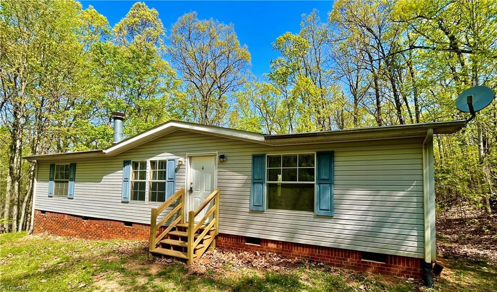 Nestled in a serene rural setting, this well-maintained manufactured home offers privacy and peaceful living surrounded by mature woods. Set back from the road, the home provides a quiet retreat with natural beauty on all sides. Recent updates enhance both comfort and style, including new flooring throughout the main living areas, fresh interior paint in a modern palette, and updated light fixtures that brighten each space. This single-story residence features an open-concept layout with a welcoming living room, functional kitchen, and open dining area. This all includes brand new interior doors, new appliances, and a new heat pump. The split-bedroom design ensures privacy, with a primary suite separated from additional bedrooms. Ideal for nature lovers, homesteaders, or those seeking a quiet countryside lifestyle, this property blends practicality with charm in a peaceful wooded setting. **Broker owned**